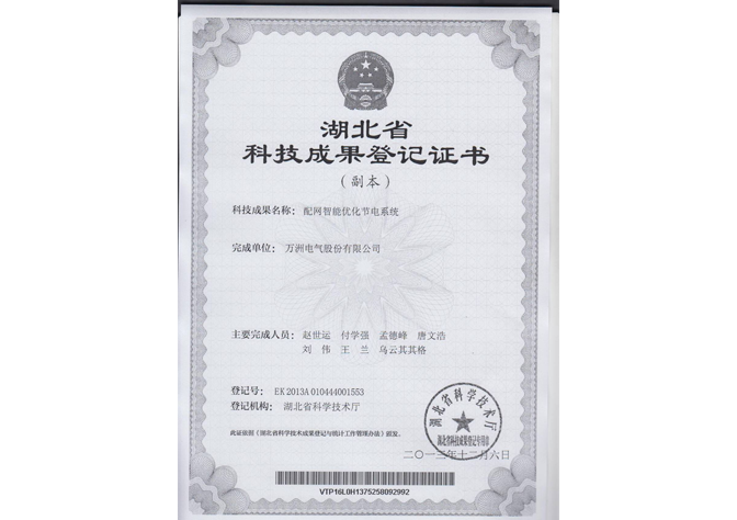 湖北省科技成果登记证书