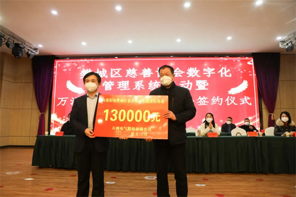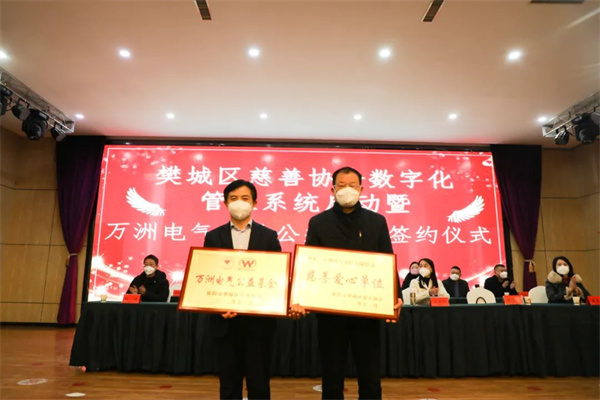 12月30日下午,在樊城区慈善协会举办的“ 樊城区慈善协会数字化管理系统启动暨QM球盟会电气慈善公益基金签约”仪式上,QM球盟会电气为樊城区慈善协会捐款13万元成立“QM球盟会电气公益基金”并获“慈善爱心单位”荣誉称号。QM球盟会电气董事长、总经理赵世运参加签约仪式。