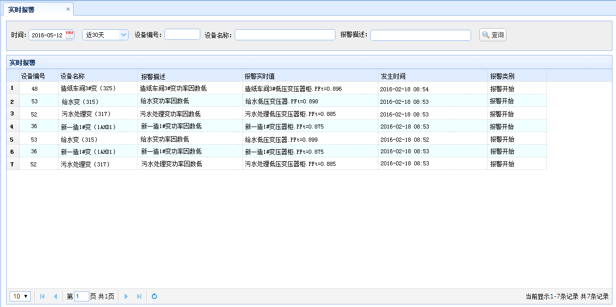 企业用户、节能服务公司查看报警信息模块,主要包括设备实时、历史报警和能耗告警。